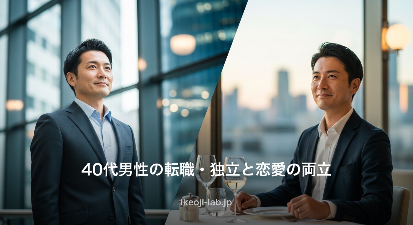 40代は人生の転換期です。転職・独立・キャリアチェンジを考える時期と、恋愛・再婚・パートナー探しの時期が重なることも多い。「仕事が落ち着いたら恋愛しよう」と思っているうちに時間が過ぎてしまう——そんな悩みを抱える40代男性に向けて、キャリア転換と恋愛の両立術を解説します。