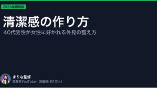 外見・清潔感 【2026年最新】40代男性の清潔感の作り方完全ガイド|女性が不快に感じるNG習慣も解説 40代男性の清潔感の作り方完全ガイド。女性が好む外見の整え方・スキンケア・髪型・ファッションを徹底解説します。 2026.03.06 外見・清潔感