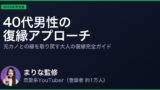 40代・50代男性専門の恋愛コンサルタント。2022年より活動を開始し、これまで100名以上の中年男性の恋愛再起動をサポート。「正しい方法を知るだけで、40代男性は劇的に変われる」をモットーに、コーチング・マッチングアプリ最適化・外見改善を提供。