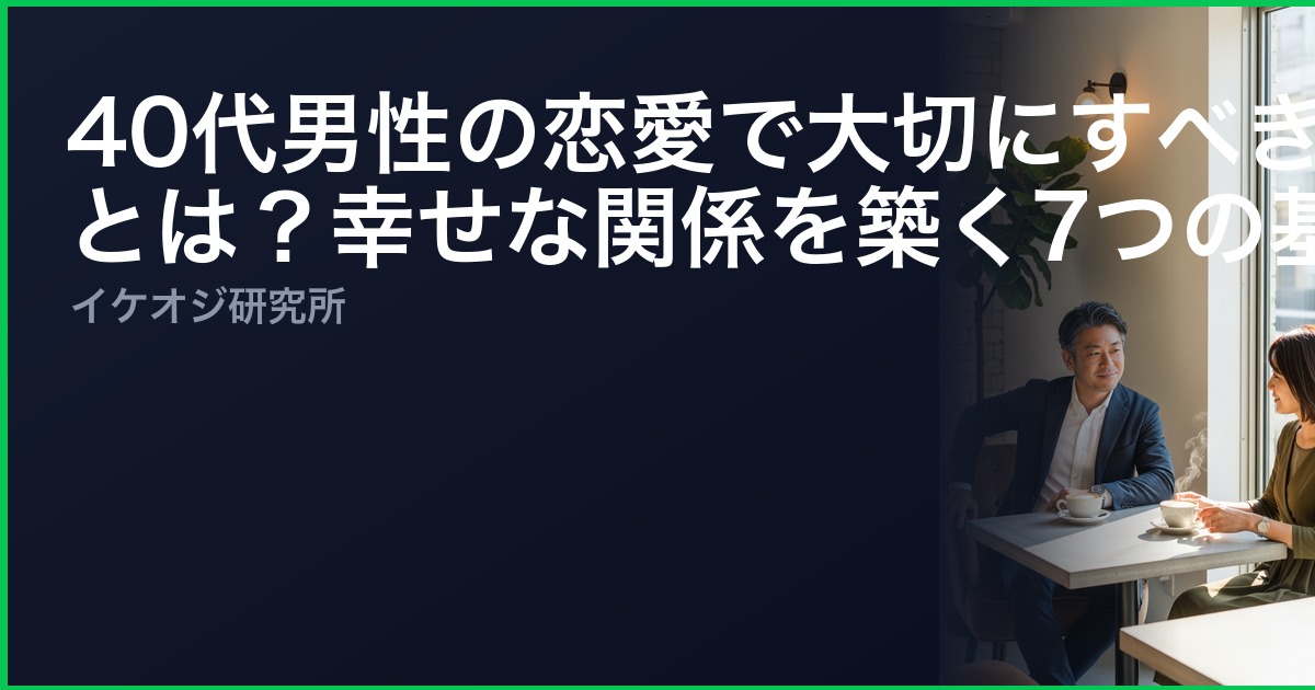 この記事では、40代男性が恋愛において大切にすべき7つの価値観について、具体的なエピソードやデータを交えながら詳しく解説していきます。