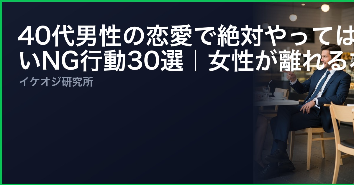 「デートの後、なぜか音信不通になった」「良い雰囲気だったのに次がない」——40代男性の恋愛相談でこうした声を聞かない日はありません。実は、恋愛がうまくいかない原因の9割は「無意識のNG行動」にあります。