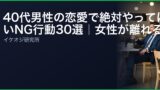 女性が「この人は無理」と感じる瞬間は意外と細かいところにある。40代男性が無意識にやってしまっている「引かれる行動ワースト20」を正直に解説する。心当たりがある場合は今すぐ改善しよう。
